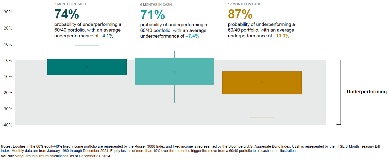 Portfolio underperformance was worse for those who converted their balanced portfolios to cash and held it for longer periods of time.